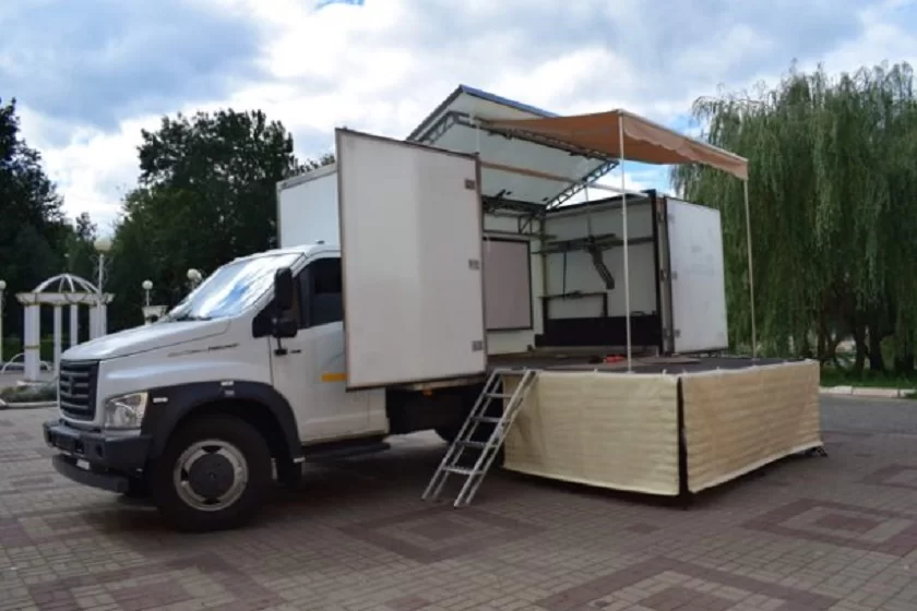 По сообщению пресс-службы правительства области, машина может использоваться как культурный комплекс. Она оборудована выдвижной сценой, оснащена комплектом кино-, свето- и звуковой аппаратуры, автономным источником питания.