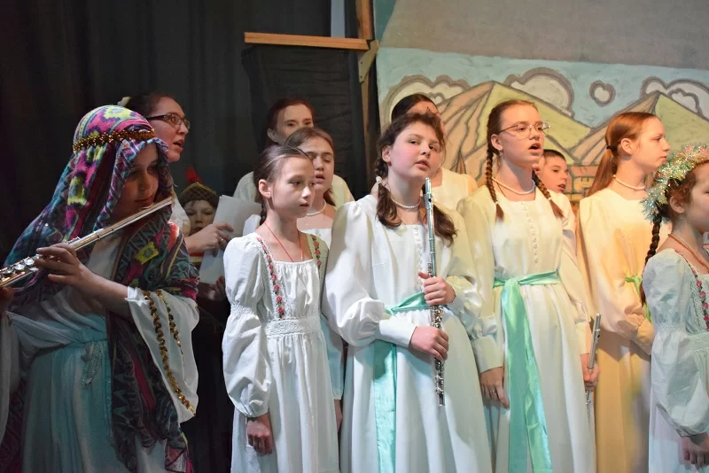 О духовном смысле праздника рассказал детям клирик Петропавловского собора иерей Пётр Гвоздев. Подготовили вертепное действо «Про царя Ирода и Рождество» воскресная школа и детско-юношеский хор при соборе святых апостолов Петра и Павла под руководством матушки Екатерины Гвоздевой.