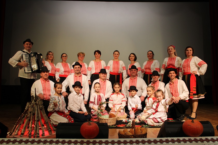 Молдавская диаспора подготовила масштабное выступление, в котором задействованы мужчины, женщины и дети. Артисты на сцене – участники молдавского народного фольклорного ансамбля песни и пляски под руководством музыкального руководителя Лопатинского дома культуры Виктора Лянкэ. Виктор Павлович в презентованном номере «Праздничная Хора» играет на аккордеоне.