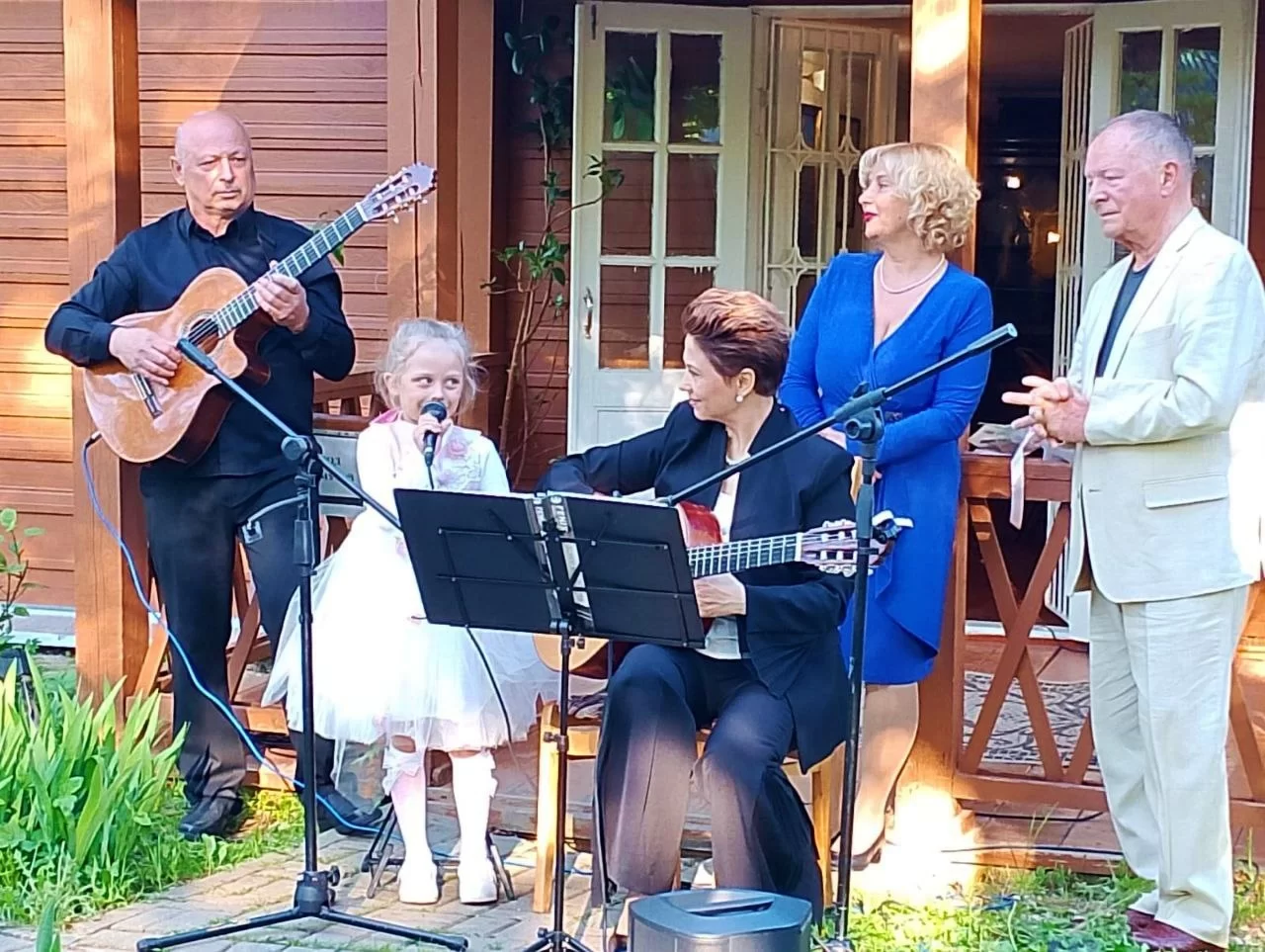 Заслуженный артист России, актёр театра и кино, режиссёр Борис Галкин, певица, лауреат вокальных конкурсов Инна Разумихина и их дочь Аня Галкина дали блестящий концерт на веранде музея. В него вошли произведения о Родине и о любви, песни на стихи поэтов Николая Тарусского, Булата Окуджавы, Марины Цветаевой, авторские произведения. В исполнении Ани Галкиной прозвучали легендарная «Катюша» и «Оранжевый кот» - это стихотворение написал Леонид Филатов, известный российский актёр и режиссёр. С ним был очень дружен Борис Галкин.