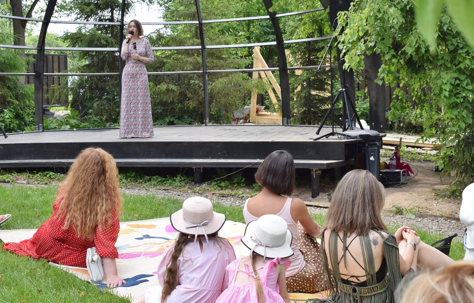 Праздник пионов стал официальным открытием сцены зелёного театра в саду. Одними из первых возможности «зеленой» сцены попробовали малыши из тарусского детского сада «Берёзка», побывавшие здесь с экскурсией.
