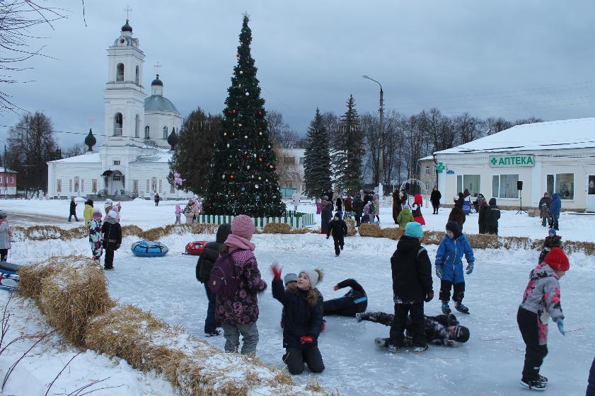 Юных тарусян ожидал поистине сказочный сюрприз: возле елки для них залили каток. И о безопасности позаботились, обложив вокруг мягкими брикетами из сена. До самого вечера здесь слышался смех и звуки быстрых коньков, скользящих по льду.