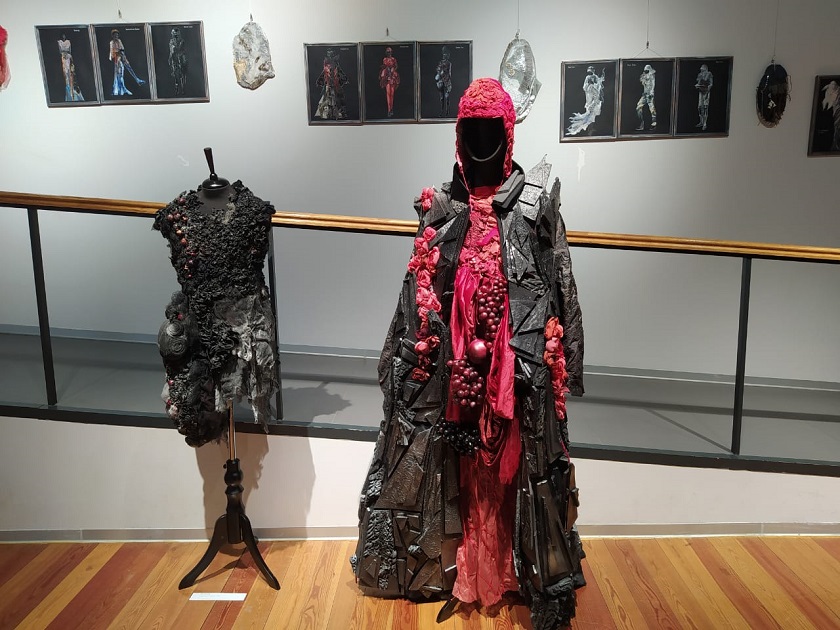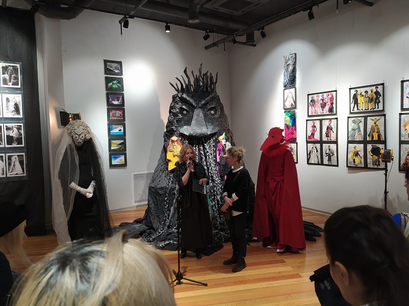 Выставка на самом деле удивительная. Это дипломные работы выпускников мастерской сценического костюма ГИТИСа прошлого года. На открытие приехали художники по сценическому костюму – студенты второго курса института во главе со своими преподавателями и помощником ректора Дмитрием Буткевичем.