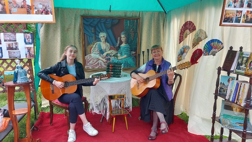 Несмотря на холодную погоду, сильный ветер и дождь, служители Мельпомены вышли на театральные подмостки. Театрализованные представления от всех коллективов Жуковского района завоевывали любовь публики с первых мгновений и вызывали шквал аплодисментов от благодарных зрителей. В подарок для гостей выступил Чеховский драматический театр. Сотрудники библиотек представили в «Литературном салоне» книги о Е. Дашковой и её мемуары. Юные художники рисовали с натуры открывающиеся взору пейзажи - стоящий на холме храм святой Троицы и широкое поле с бурной рекой. И, конечно, никто не мог пройти мимо, не замерев на мгновение, мимо льющейся музыки гитары.