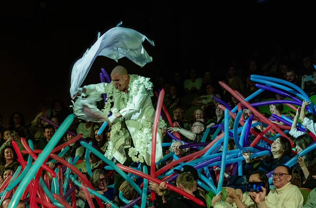 Так называется моноспектакль артиста Андрея Кислицина, известного своими ролями в Цирке дю Солей, а также знакомого зрителям в качестве ведущего «Битвы экстрасенсов». Всего один человек продемонстрировал на сцене пантомиму, клоунаду, танец, физический и площадной театр. Артист рассказал историю простого человека, который ищет свое место в жизни, и многое в этом человеке было от него самого.