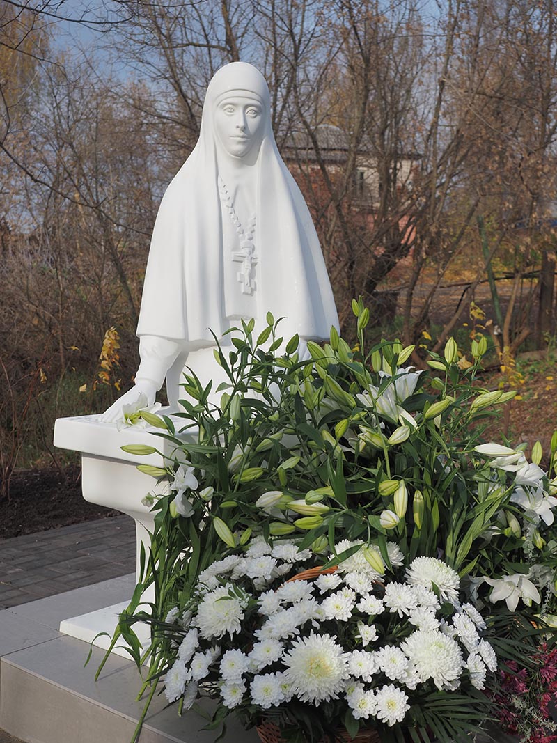 На открытие собрались сестры из разных монастырей, прихожане калужских храмов, краеведы, историки. Настроение было приподнятым, в руках цветы. И забегая вперед, отметим, что по окончании торжественной церемонии скульптура утонула в роскоши цветочных букетов. Еще большую весомость этому событию придало личное присутствие губернатора Владислава Шапши.