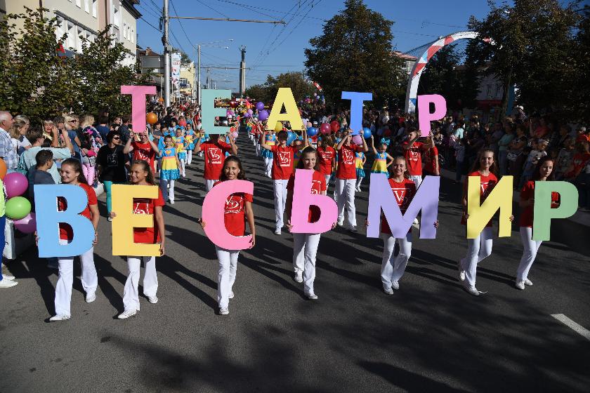 А в субботу центральная часть города стала превращаться в театр. Известно, что этот год является в России Годом театра, поэтому девизом для праздничного карнавала, состоявшегося в Калуге уже в 14-й раз и являвшегося одним из главных событий праздника, выбрали девиз «Весь мир — театр», как и для многих других празднично-развлекательных мероприятий.