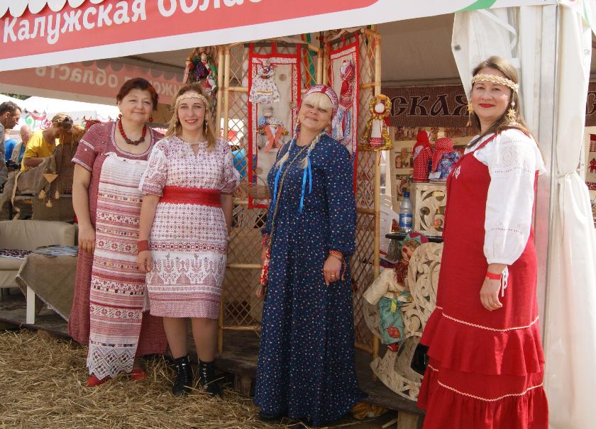 Калужане тоже славятся своими умениями – главные достижения продемонстрировали мастера Дома народного творчества и кино «Центральный», куратором выставки стала Вероника Гелюх. Плетение из льняного шнура привезли в Москву Александра Огородник и Ирина Соловьева. Традиционная текстильная кукла была показана Жанной Столярской. Авторские работы из бересты Светланы Сивковой и бисероплетение Людмилы Шугулевой (поселок Товарково) стали еще одним замечательным дополнением нашей экспозиции. И, конечно, широкому кругу посетителей торговых рядов была представлена хлудневская игрушка – бренд Калужской земли.