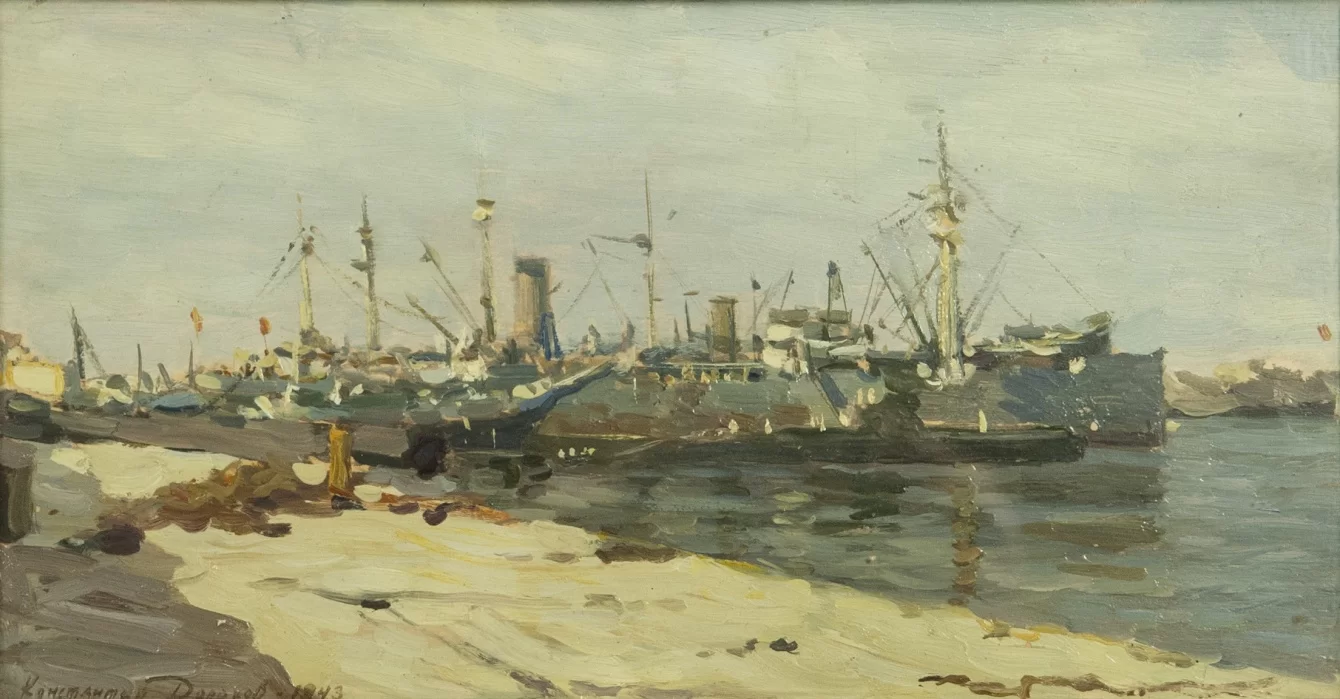 Полотно написано в манере импрессионизма – широкими мазками – и больше напоминает этюд, чем законченное произведение. Но если начинаешь узнавать его историю, узнавать жизнь автора, оно становится настоящим документом, показывающим обстановку на причале. Главными героями пейзажа стали военные корабли, перевозившие снаряды и снаряжение для бойцов Красной армии. Здесь эти труженики Великой Отечественной стоят на причале города Поти, освещенные солнцем, и легкие волны гладят им бока… Этот транспорт служил важной опорой защитникам, подвозя по морю снаряды. Это сыграло важную роль в Великой Отечественной войне и приближении Победы.