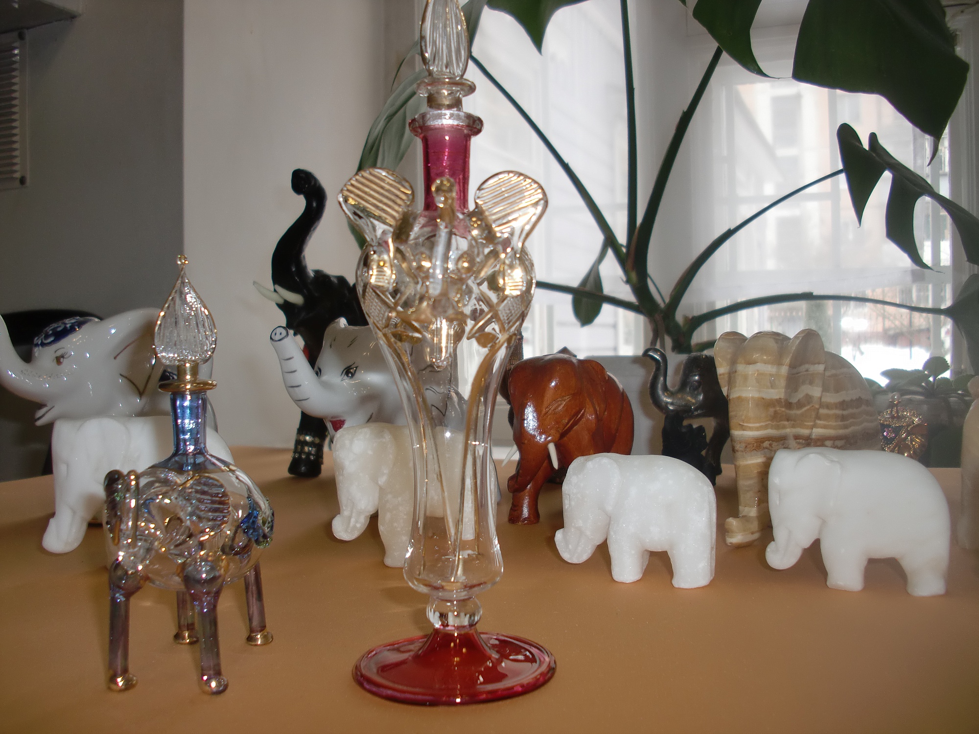 Романтичны образы слонов в… стекле. Два флакона от духов в виде фигурок животных, стали красивым дополнением коллекции.