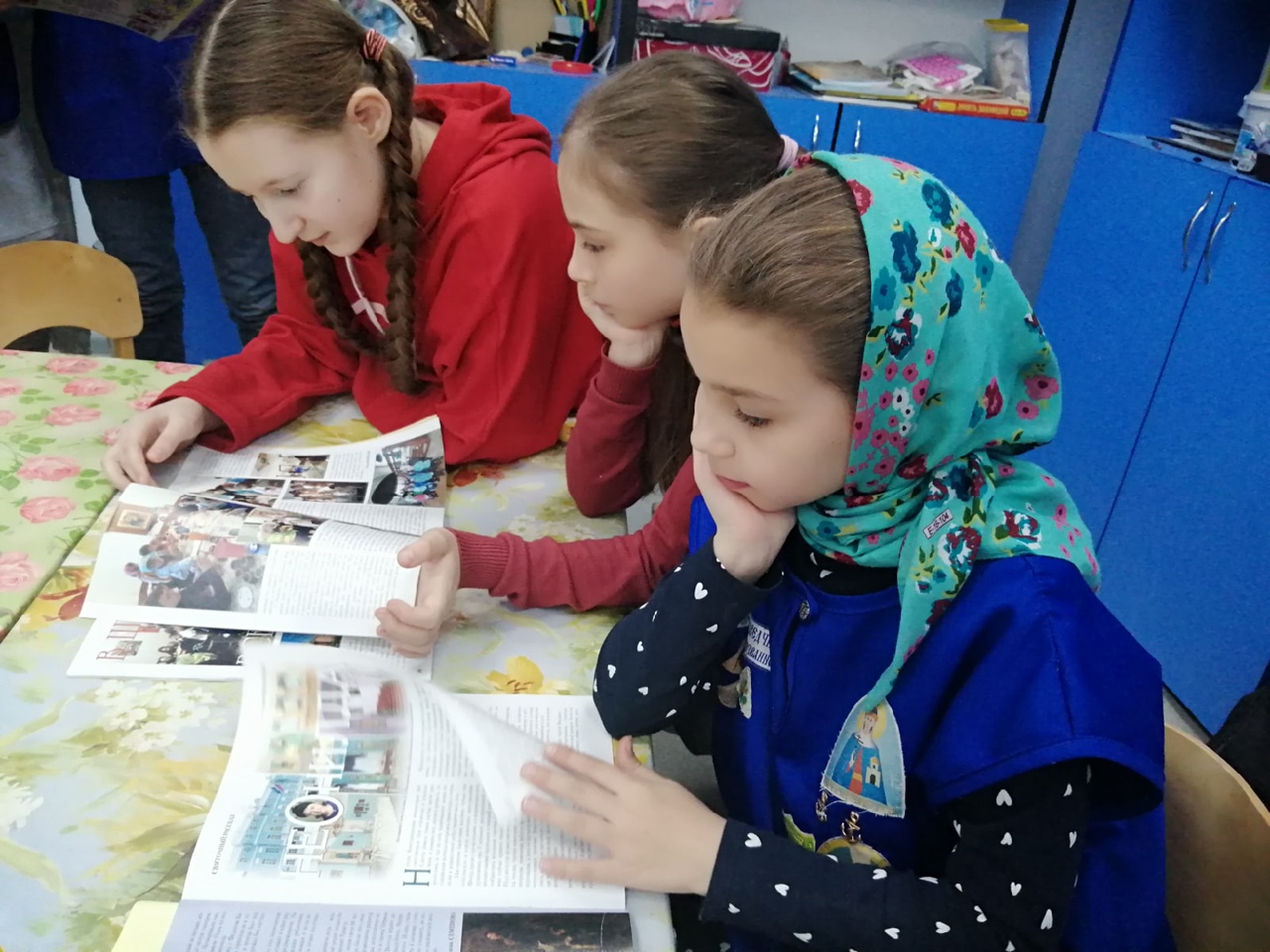 Ученики воскресной школы (при храме Покрова Пресвятой Богородицы, что «на рву») познакомились с православным журналом для детей и юношества «Божий мир». Мероприятие провели сотрудники областной детской библиотеки в рамках Недели информации.