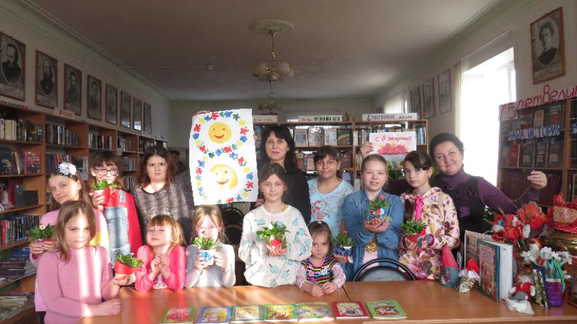 — Раньше к Международному женскому дню мы проводили с детьми мастер-классы по изготовлению цветов из бумаги, - это нравилось всем. В этом году отошли от привычного оригами и отнеслись к празднику по-другому, но не менее творчески, - говорит Надежда Михайловна. – Наши юные читатели поздравили мам живыми цветами, которые вырастили сами. К тому же, они сами украсили и цветочные горшки.