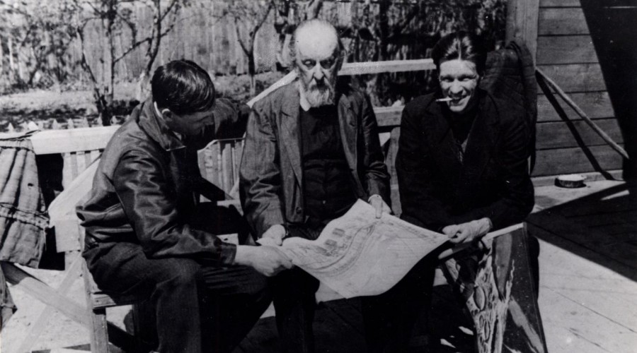 В 1930-е в Калугу несколько раз приезжала группа кинематографистов из «Мосфильма». Нужна была грамотная консультация перед съемками первого фильма о полете в космос.Вот что вспоминал об этой исторической встрече писатель, киновед и сценарист Виктор Шкловский: «В Калуге стояла осень. В тот день в домике у Оки Циолковские рубили капусту. Встреча была необычной. В палисаднике стоял велосипед. На толстой железной проволоке висела керосинка. Хозяин не без гордости показывал ножи и вилки из первой советской нержавеющей стали. Циолковский заметил, наконец-то наши металлурги научились делать металл для постройки дирижаблей и ракет».