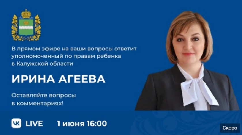 Эфир запланирован на 16:00. В это время уполномоченный по правам ребёнка региона Ирина Агеева расскажет калужским родителям о безопасности детей и ответит на актуальные вопросы.