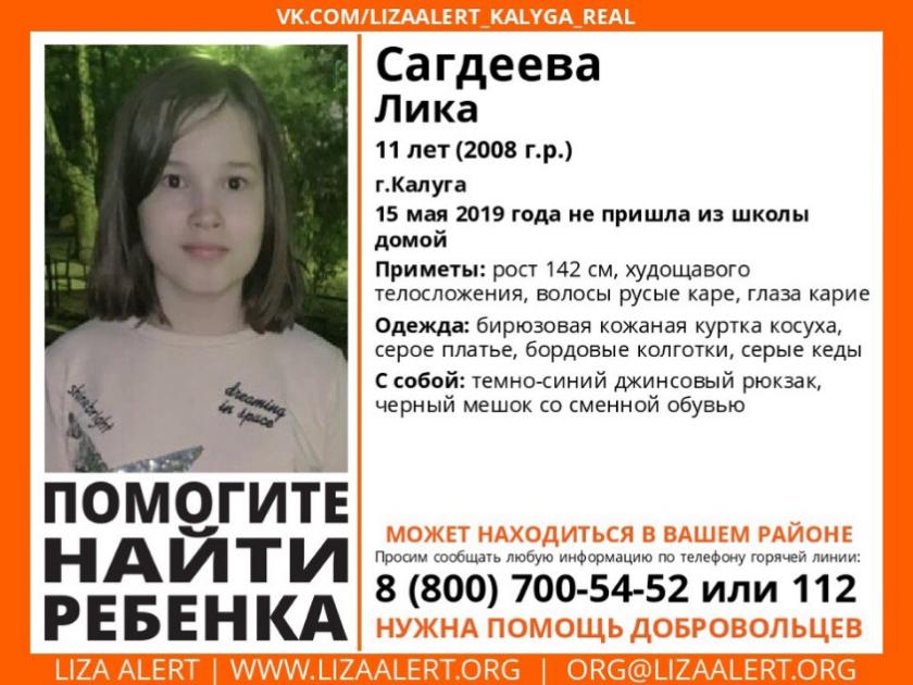Upd. Лика Сагдеева нашлась. Об этом около девяти часов вечера сообщили волонтёры "Лиза Алерт" на странице отряда в "ВКонтакте".