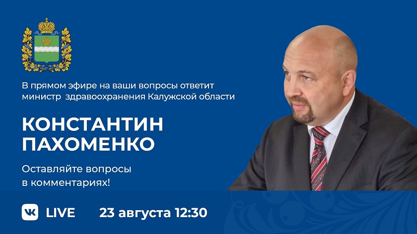 Прямая трансляция начнется в 12:30, министр со зрителями будет обсуждать актуальные вопросы регионального здравоохранения, а затем ответит на несколько вопросов, которые ему прислали калужане.