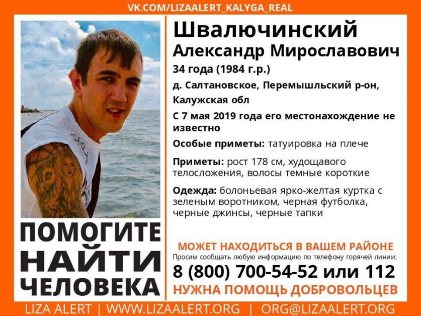 Одежда: болоньевая ярко-желтая куртка с зеленым воротником, черные футболка, джинсы и тапки. Пропавший носит татуировку на плече.