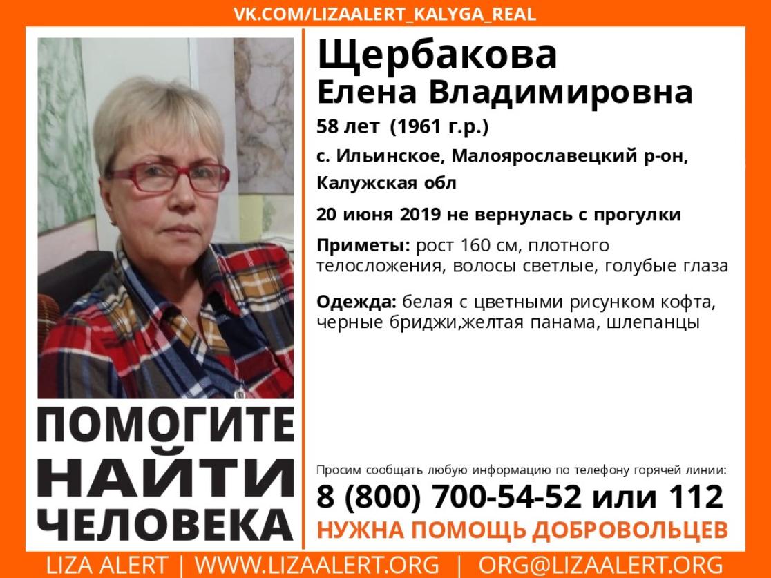 20 июня не вернулась с прогулки 58-летняя жительница села Ильинское Малоярославецкого района Елена Щербакова. Волонтеры поисково-спасательного отряда «Лиза Алерт» приступили к ее поиску.