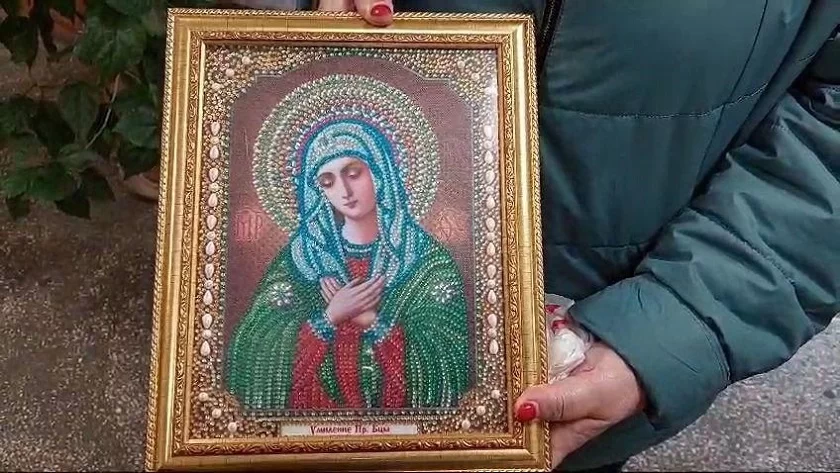 81-летняя женщина до 2020 года вместе с семьей жила в городе Стаханов Луганской Народной Республики. Там с супругом они прожили 40 лет, вырастили дочь, трудились сварщиками на местном заводе. Вот уже четыре года Любовь Михайловна живет в деревне Алекино Тарусского района, но ее душа по-прежнему болит за Донбасс, и она очень надеется, что ее икона будет оберегать бойцов на фронте.