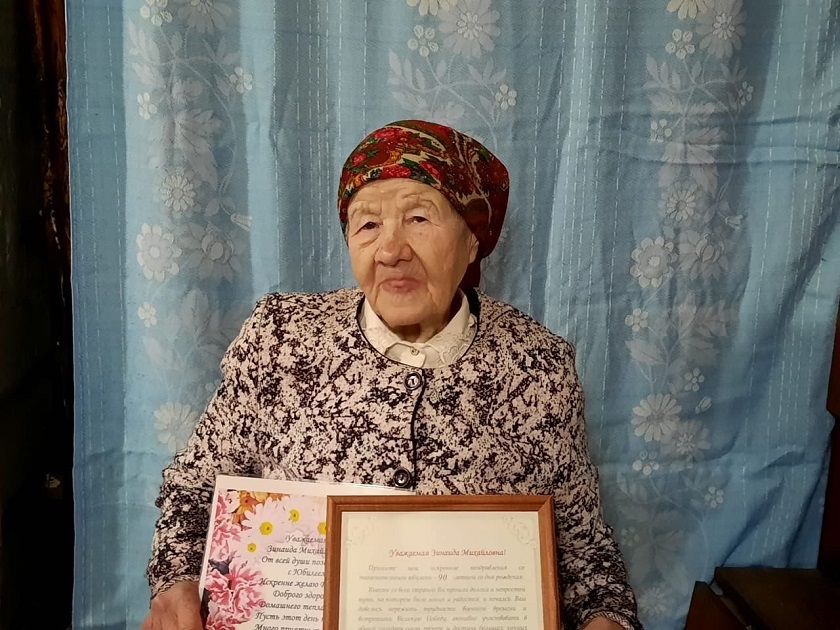 А ещё Зинаида Михайловна – многодетная мать. Она вырастила четырёх детей, имеет семь внуков и 11 правнуков. Сегодня поздравить её с юбилеем приехали представители районной администрации. Они вручили ей Письмо от Президента Владимира Путина, поздравления и памятные подарки от губернатора Владислава Шапши и администрации муниципалитета.