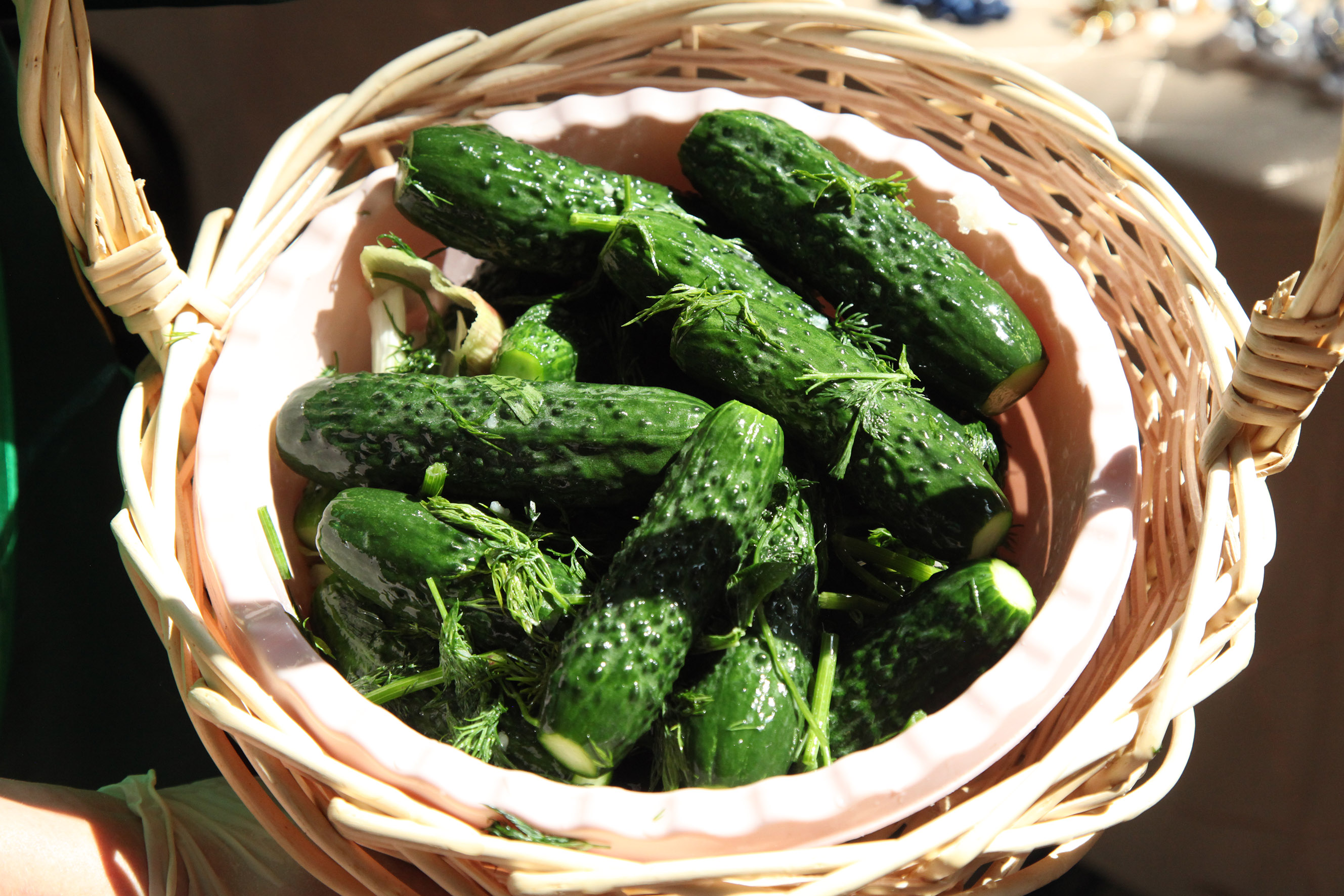 А некоторых было не оторвать от корзины, так это оказалось вкусно! Тем более что огурцы раздавал «огурец».