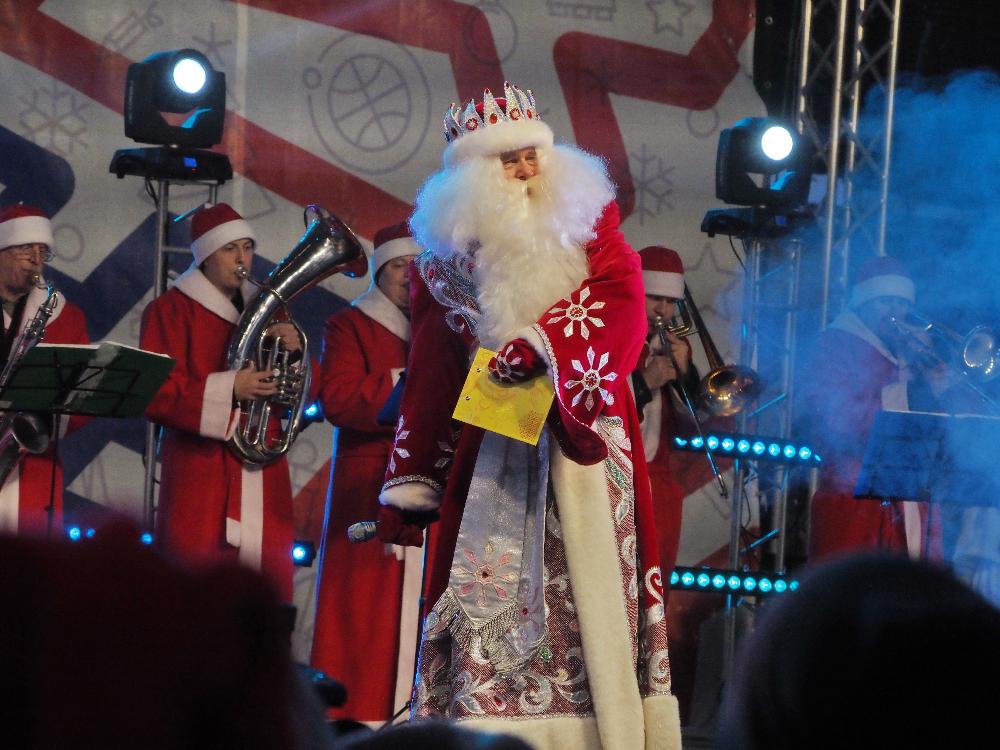 Тон праздничной атмосфере задали... 15(!) обнинских Дедов Морозов - музыкантов духового оркестра Дома культуры ФЭИ под управлением Павла Дронова.