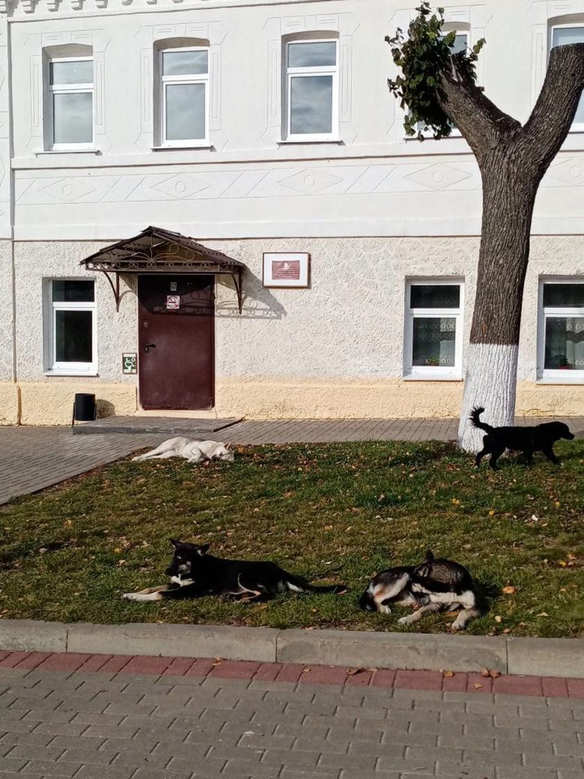 Собаки гуляют сворами. И, надо отметить, они не беспризорные, а имеют любящих хозяев. Вот, к примеру, 3 октября «коллектив» псов разлегся отдохнуть в центре города, на газоне перед детской школой искусств. Может быть, они вполне добродушные. Но ведь здесь идут дети, и многие из них просто-напросто могут испугаться.