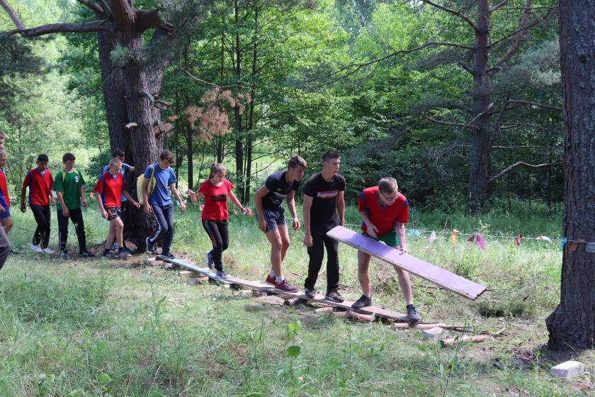 Главным и самым весомым для завоевания победы в слете стало прохождение эстафеты. Так называемая туристическая тропа включала в себя бег, подъём вверх по склону, завязывание туристических узлов, переправу по параллельным верёвкам, перенос условно пострадавшего на носилках, преодоление воображаемого болота, разжигание костра.Интересно и главное полезно было юным туристам принять участие в мероприятии, не входящем в конкурсную программу. Сразу для всех участников слета провели командообразующиий тренинг. Смысл его – все делать вместе. Цель – сплоченность коллектива.