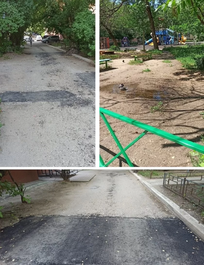 Так, опять же по просьбе жителей подрядчики отремонтировали дорогу во дворе дома №76 по улице Кирова. Раньше там были ямы. Сейчас проблема решена.