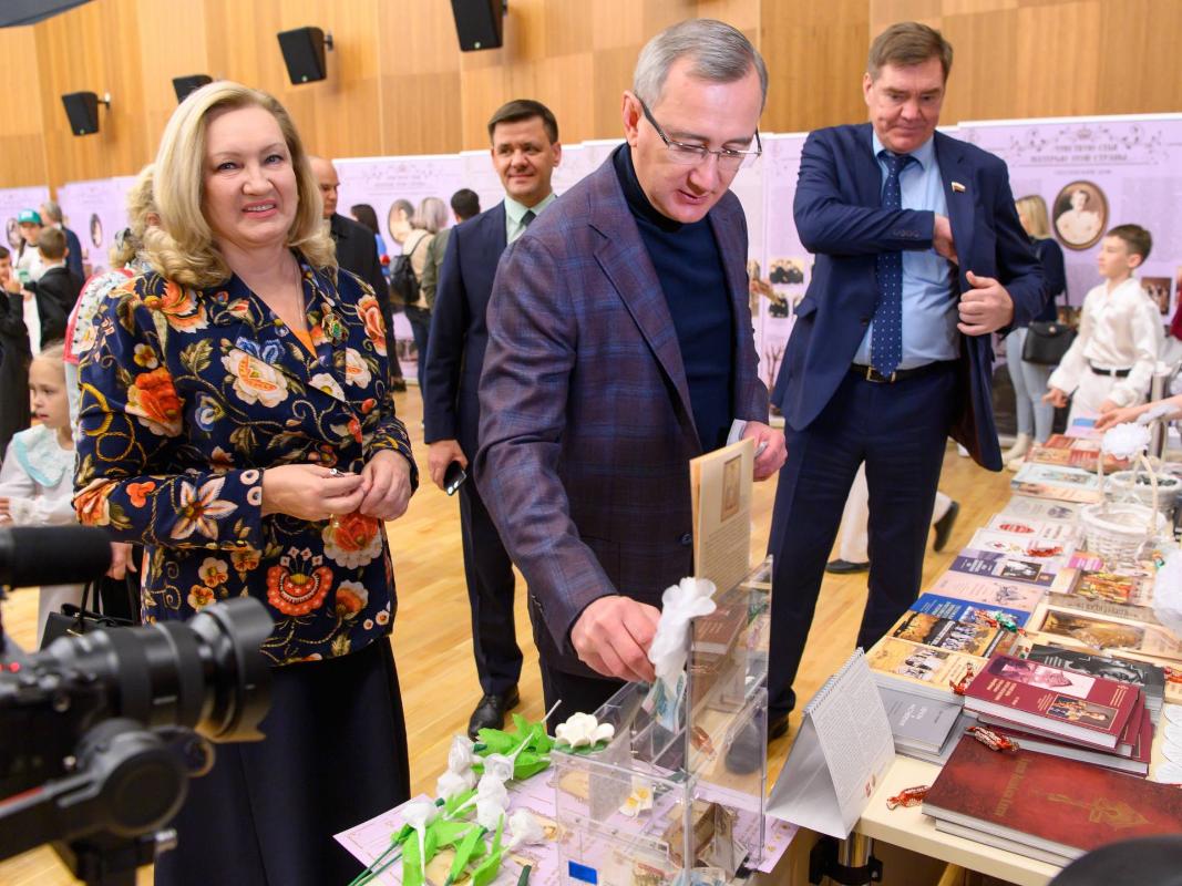 Глава региона вместе с сенатором Александром Савиным, председателем наблюдательного совета Елисаветинско-Сергиевского просветительского общества Анной Громовой, депутатом Государственной Думы Ольгой Коробовой и другими официальными лицами покупали сувениры, с удовольствием посмотрели небольшой концерт, в котором приняли участие православные хоры обителей региона и творческие коллективы школ искусств, с интересом ознакомились с передвижной выставкой, посвященной императрице Александре Федоровне, которая была вдохновительницей и покровительницей благотворительного движения в России.