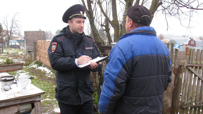 Едем в д. Тимашово, где проживает проблемный гражданин Александр А. Тот еще «экземпляр»: ранее судим за убийство, вышел, отсидев срок, но жить с чистого листа не получается - репутация у него семейного дебошира и алкоголика, на сожительницу руку поднимает – как далеко это может зайти? Поэтому снова находится под административным надзором. Два-три раза в месяц участковый к нему наведывается без предупреждения.Подъезжаем к дому, поднадзорный, увидев непрошеных гостей, руки в стороны раскинул, ну прямо с распростертыми объятиями встречает – эдакая бравада, а сам-то суетится. Чаевничать мы, естественно, отказались, но в дом прошли.