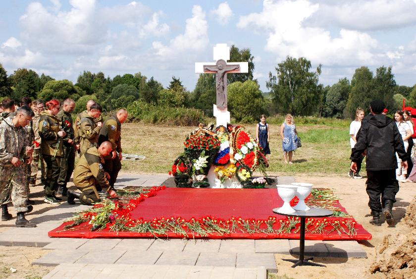 Под звуки траурной мелодии гробы с останками опустили в могилу, каждый из присутствующих бросил в нее горсть земли. К подножию поклонного креста возложили цветы и венки.
