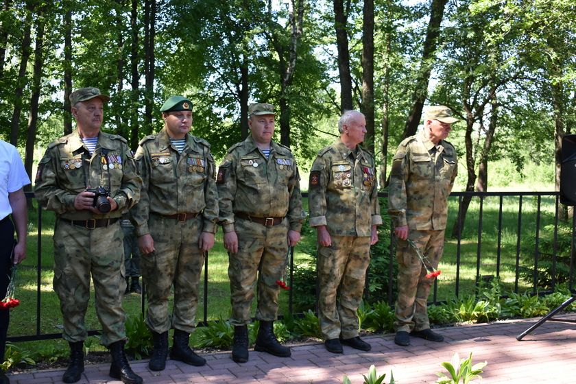 На братском захоронении состоялся траурный митинг. Командир отряда Виктор Ефимочкин рассказал, что 22 июня 1942 года большая группа советских войск — десантников, кавалеристов, партизан и мирных жителей - вышла из рейда по тылам врага на границе Кировского и Куйбышевского районов. Осуществляя прорыв обороны врага, они наткнулись на минные поля. По мнению командира поискового отряда, десантники сознательно пошли на смерть, чтобы спасти основную колонну - раненых, детей, стариков, женщин, которые шли за ними. Одного из десантников, подорвавшегося на мине, спустя 80 лет и нашли поисковики.