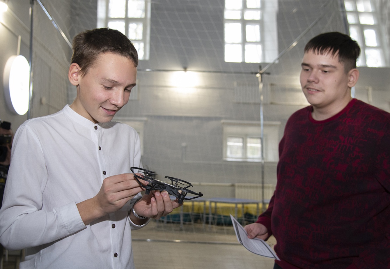После теоретического занятия ребята приступили к практике. Они учились запускать дроны в специальном кубе, маневрировать и обходить препятствия на трассе для дронрейсинга. Этот опыт был для ребят пробой пера – раньше никто из них не пытался управлять беспилотниками. И не беда, что первый запущенный дрон запутался в сетке куба. Зато ребята освоили новые навыки, а кое-кто даже задумался о смене карьерного направления.