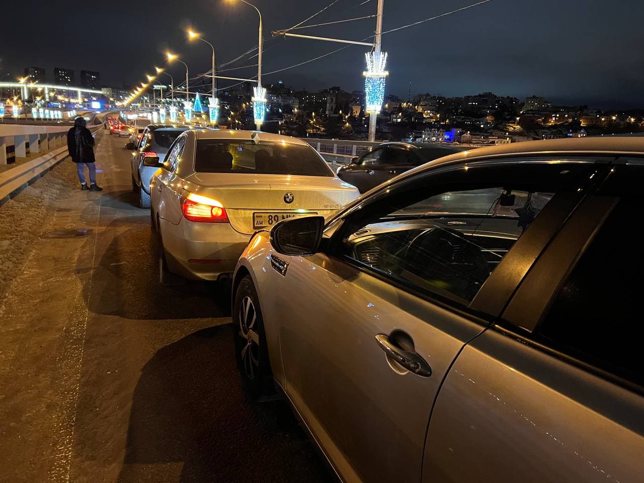 Как он сообщил, он ехал в такси и на ровном месте водитель одной из машин решил дать назад и тем врезался в позади стоявшие автомобили. В аварии никто не пострадал и серьезных повреждений нет.