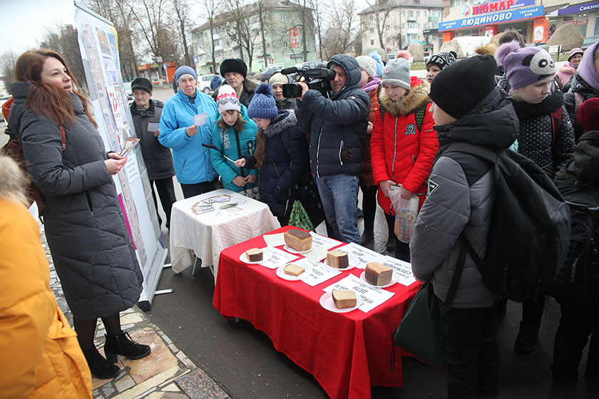 Члены общественного движения «Волонтёры Победы», молодёжного совета при Людиновском районном собрании и молодёжного актива РДК разместили на фонтанной площади информационный тематический стенд и разложили для примера хлеб, нарезанный по установленным нормам выдачи: по 125-300 граммов – на детей и иждивенцев, по 200-400 гр – на служащих и по 400-600 гр – на рабочих. Пятиклассник школы №2 Никита Семикин отметил для себя, что рецепт блокадного хлеба менялся в зависимости от того, какие ингредиенты были в наличии, и что нередко в него добавляли бумагу и опилки. Школьникам, представителям старшего поколения и всем прохожим волонтёры поведали о несгибаемом мужестве и стойкости, примере выдержки и патриотизма жителей непобеждённого города. А позже они проведут одноименный исторический квест в центральном городском парке.