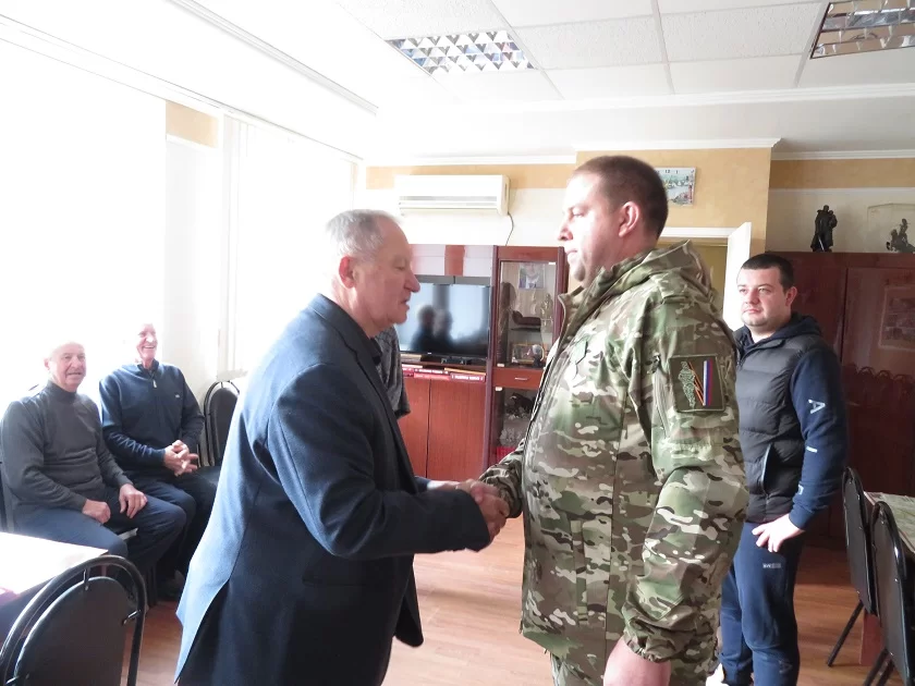 Поздравляя земляка, первым в районе удостоенного почетной областной награды, Владимир Бузанов поблагодарил его за патриотизм и пожелал скорейшего возвращения домой с Победой.