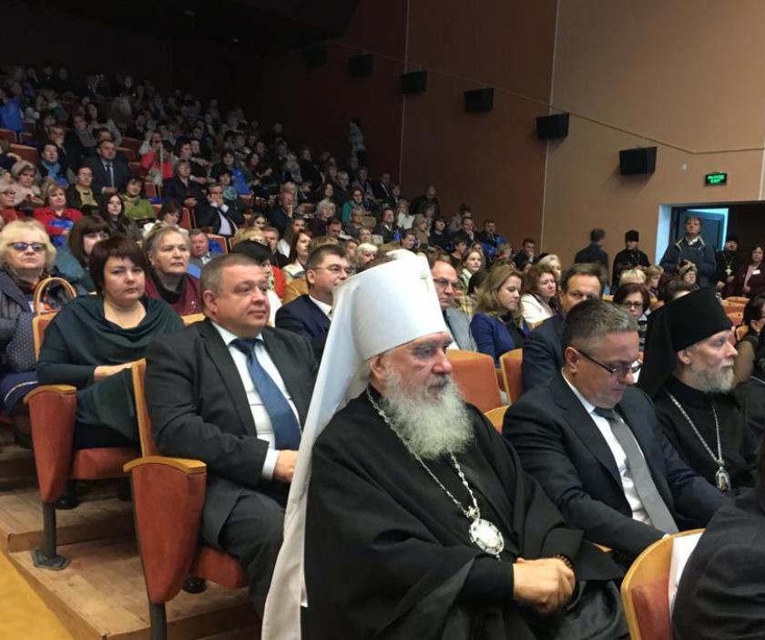 В зале калужской филармонии пленарное заседание началась с молебна и выступления хора Калужской духовной семинарии.