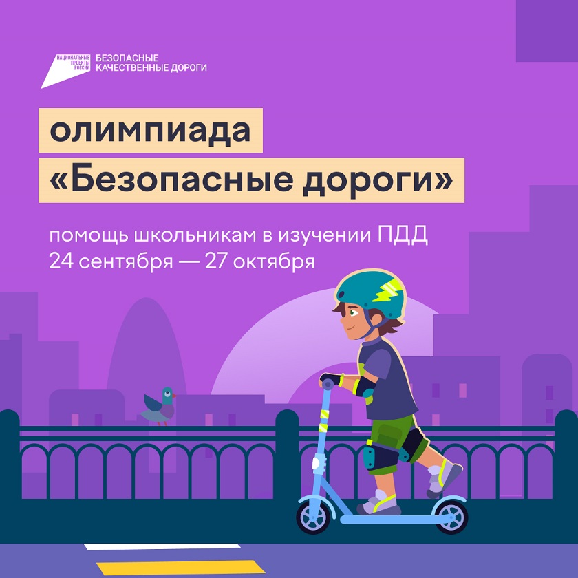Онлайн-состязание проверяет и помогает повысить дорожную грамотность учеников 1-9 классов. Организаторами олимпиады выступают Минтранс России, Госавтоинспекция МВД России, Учи.ру и АНО «Национальные приоритеты» при поддержке Минпросвещения России и национального проекта «Безопасные качественные дороги».