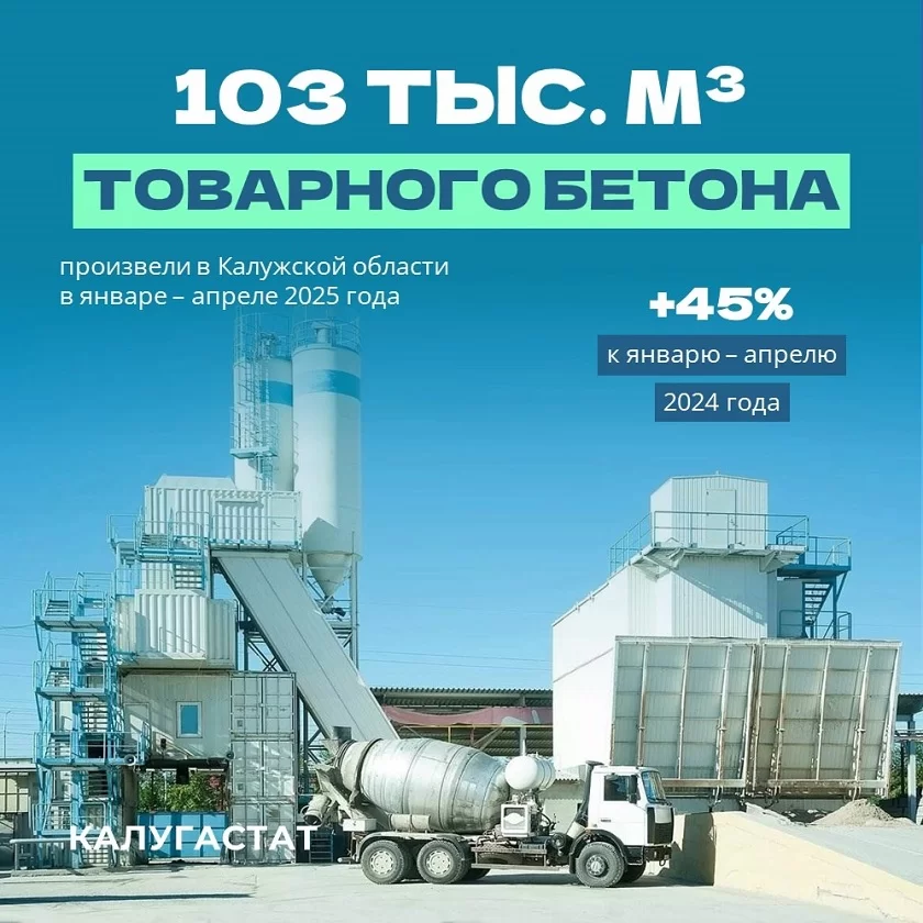 С января по апрель 2025 года в Калужской области было произведено 103 тысячи кубических метров товарного бетона.