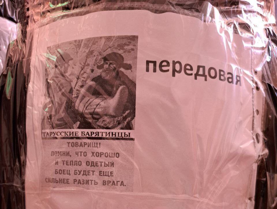 Жители села долго думали, как же им обозначить на фронтовых посылках свою группу. И придумали — их лейблом стал плакат времен Великой Отечественной войны, на котором изображен дедушка в ушанке, вручающий советскому солдату валенки. «Товарищ! Помни, что хорошо и тепло одетый боец будет еще сильнее разить врага!» – гласит надпись времен 1942 года. Очень актуальна она и в наше время.