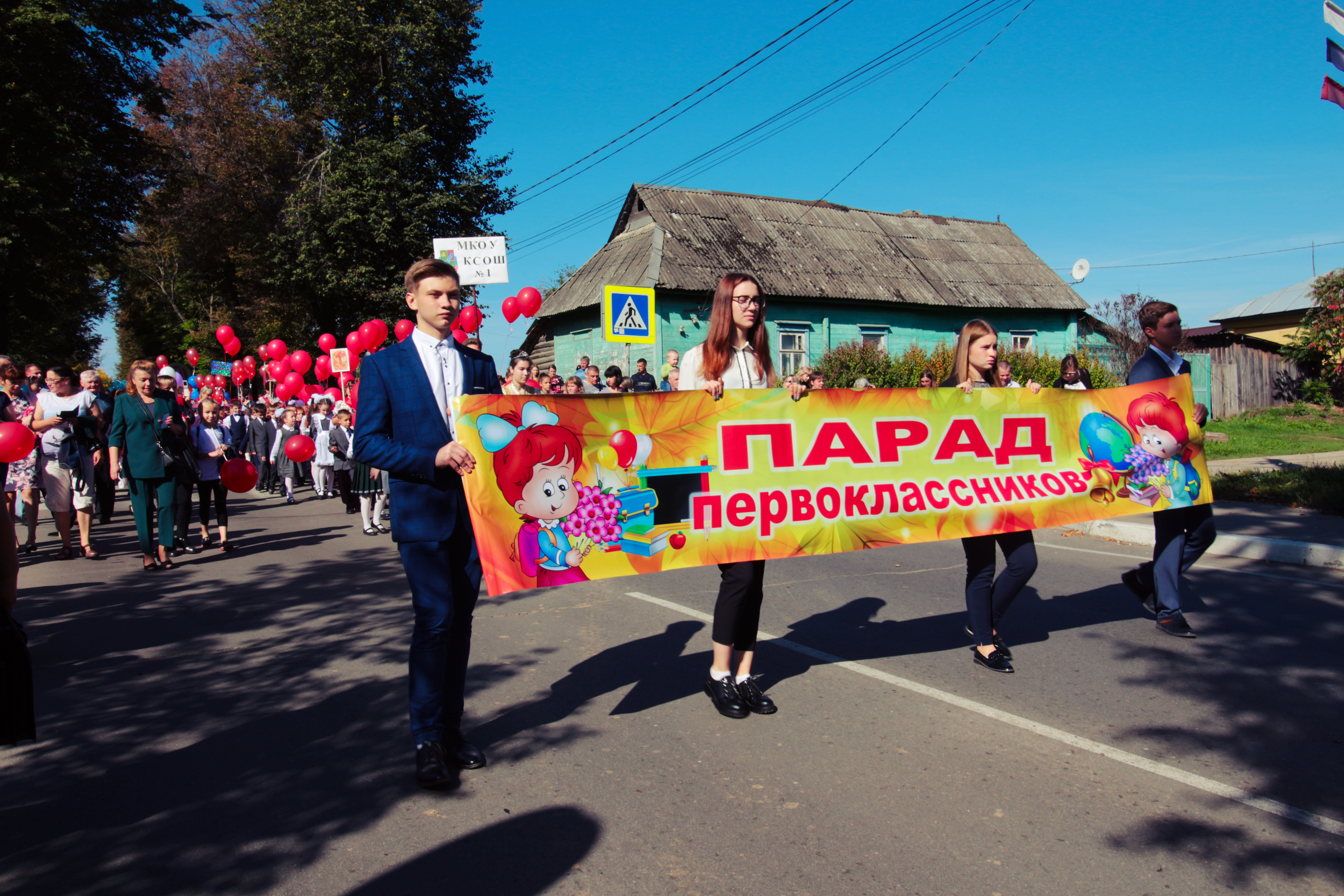 Начался он с весёлого шествия. Ребята построились в колонну и двинулись по направлению к детскому парку. Получилось пёстро и оживлённо. Впереди ехала машина Госавтоинспекции. Следом музыканты из военного оркестра ракетной дивизии будили улицы бодрыми маршами. За ними спешили первоклашки. Школьники постарше и учителя несли знамёна и баннеры. А по тротуарам со смартфонами и прочей фототехникой наперевес летело облако родителей, дедушек, бабушек и фоторепортёров.На Большой Советской улице, ставшей в этот день пешеходной, ведущие звонкими голосами перечисляли проходящие школы, которые затем окружали импровизированную трибуну, формируя огромное, в ширину улицы, каре — в этом году в Козельском районе 370 первоклассников.