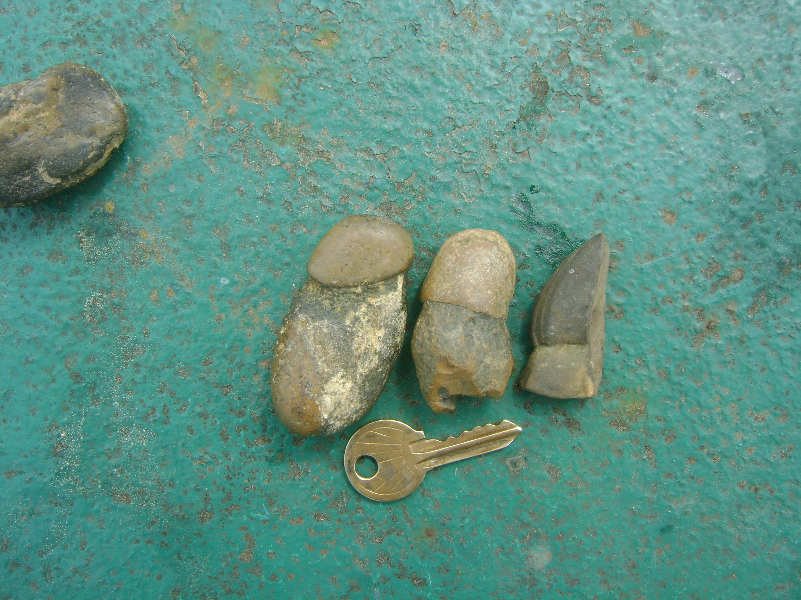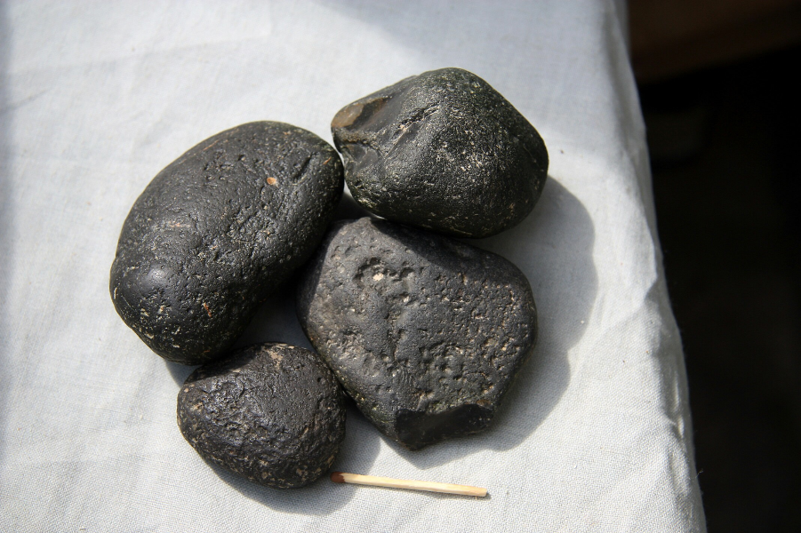 Были предположения: дескать, кремешки попали позже в прибойную зону древнего моря, где их и окатало, а из-за слоев разной твердости образовались «шляпки». В подкрепление догадки обнинский краевед Юрий Урукхаев отыскал архивную публикацию известного геолога и краеведа Владимира Васильевича Ассонова о месторождении шаровой гальки у деревни Бычки под Барятином. Круглые камешки-окатыши в нашей области нередкость, даже в огородах они попадаются, но это ледниковые отложения, состоящие из самых разных пород. Под Бычками все было интереснее – море каменноугольного периода (ок. 320 млн лет от наших дней) оставило пласты черного кремня. Затем они оказались на суше, а в меловом периоде (около 80 млн лет) море вновь начало наступать, размывая сложенные кремнем берега и окатывая его прибоем до состояния гальки. Шарики получились один к одному. Они имеют не только познавательный интерес: используются в шаровых мельницах и весьма ценятся. В начале 1930-х годов месторождение разрабатывали, сейчас же оно прочно забыто, как и многие калужские. Может быть, о нем еще вспомнят? Знакомый предприниматель возил кремневую гальку аж из Италии и очень удивился, узнав о ее месторождении в Калужской области.Возвращаемся к нашим «боровичкам» – в местах их находок каменной гальки нет. От Бычков, места их находок, расстояние более 20 километров. Пока они остаются загадкой. И это хорошо – без тайн скучно жить!