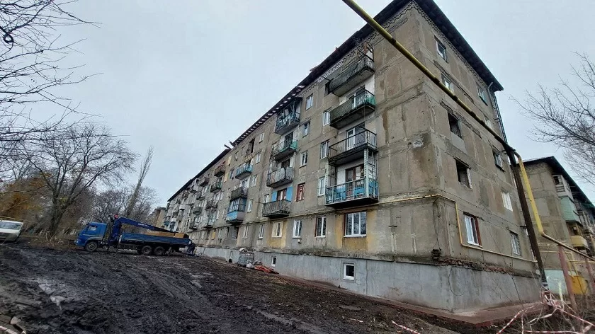 В настоящее время активные ремонтно-восстановительные мероприятия сосредоточены на многоквартирном жилом доме в городе Золотое. Строители уже завершили устройство стропильной системы, обрешётки и пароизоляции. В данный момент начат монтаж шиферного покрытия, что является важным этапом в защите здания от атмосферных воздействий.