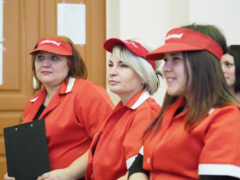 Четвертый этап показался конкурсанткам самым сложным: это практические навыки работы. Участницы должны были оформить ценники под определенный товар, разрешить конфликтную ситуацию с покупателем.