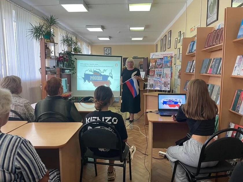 22 августа лектор Калужского отделения Российского общества «Знание» Светлана Чистякова для читателей Юбилейной модельной библиотеки провела лекцию «Флаг России - гордость наша». Она прошла в рамках проекта «Знание. Государство», направленного на распространение знаний об истории России.