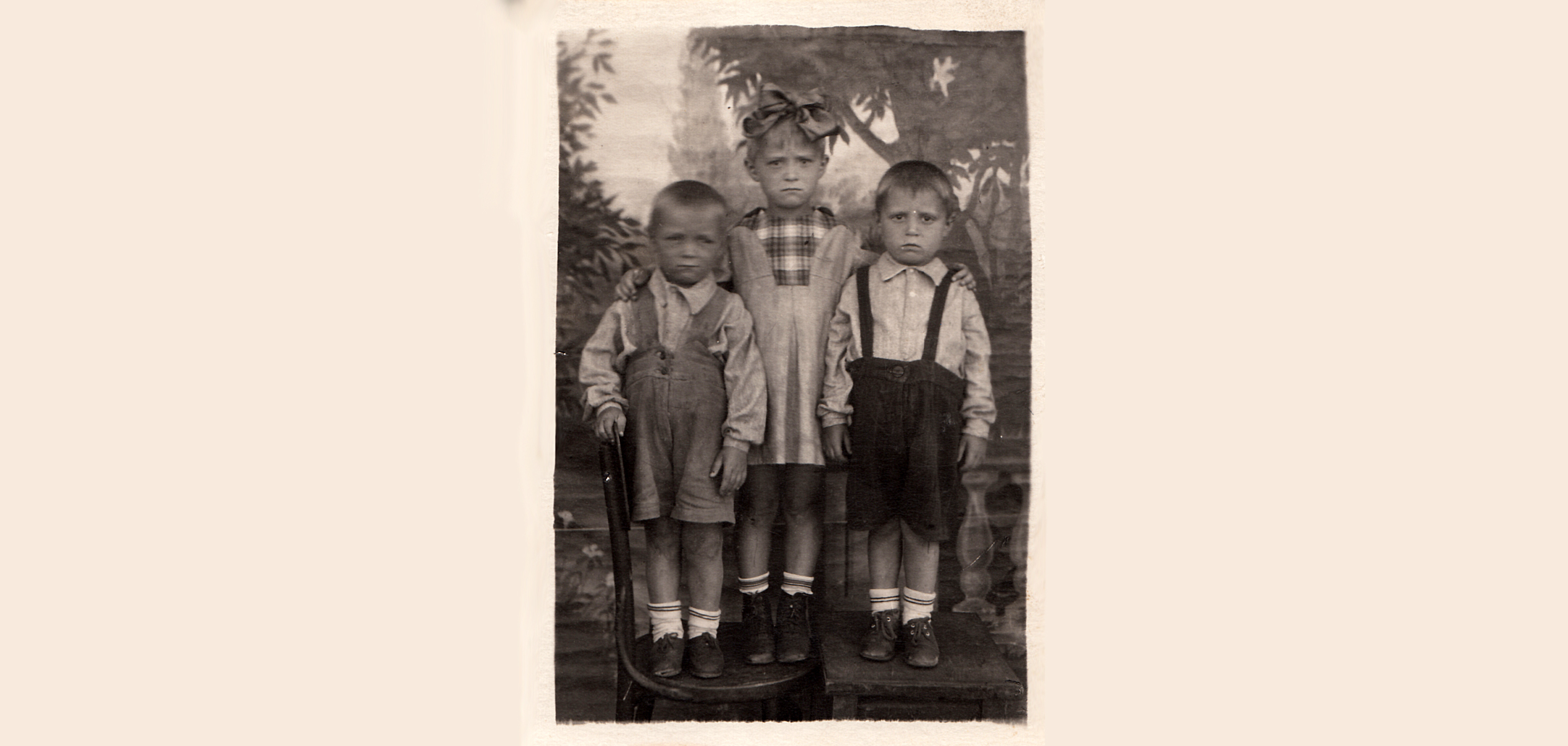 Узнать, где и когда точно было сделано это фото, теперь уже невозможно. На нём – мой отец, его брат и сестра: Луговые Владимир, Николай и Ираида.