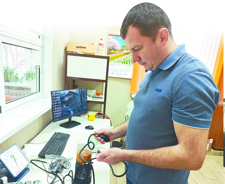 - Так как у вас прибор механический, первым делом мы проверяем его на герметичность. Накачиваем его и видим, что прибор «бежит» при закрытой груше. Это значит, что трубки высохли, а камеру надо менять, - поясняет Вадим Ванюшин.