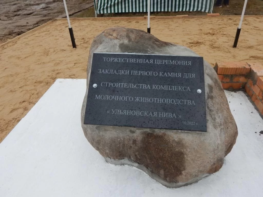 12 октября состоялась торжественная церемония закладки символического камня на месте строительства новой молочно-товарной фермы на 1,4 тысячи фуражных голов крупного рогатого скота ООО «Ульяновская Нива».