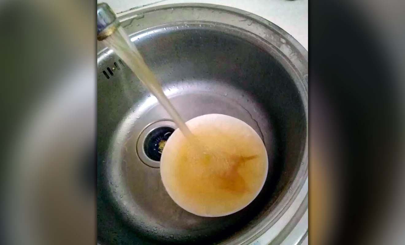 Такая вода течет из водопроводных труб в Куровском.